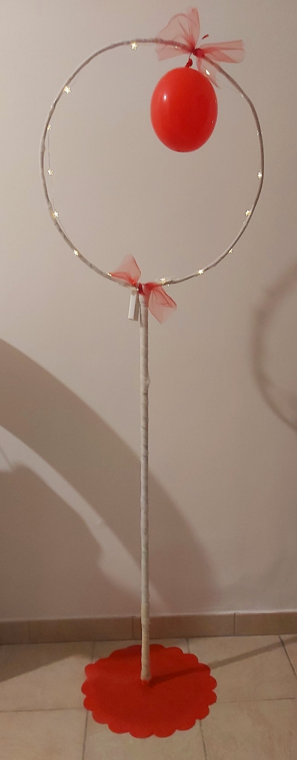 Puoi rivestire con tessuti e palloncini, la ritiri pagando il noleggio e la riconsegni a noi.