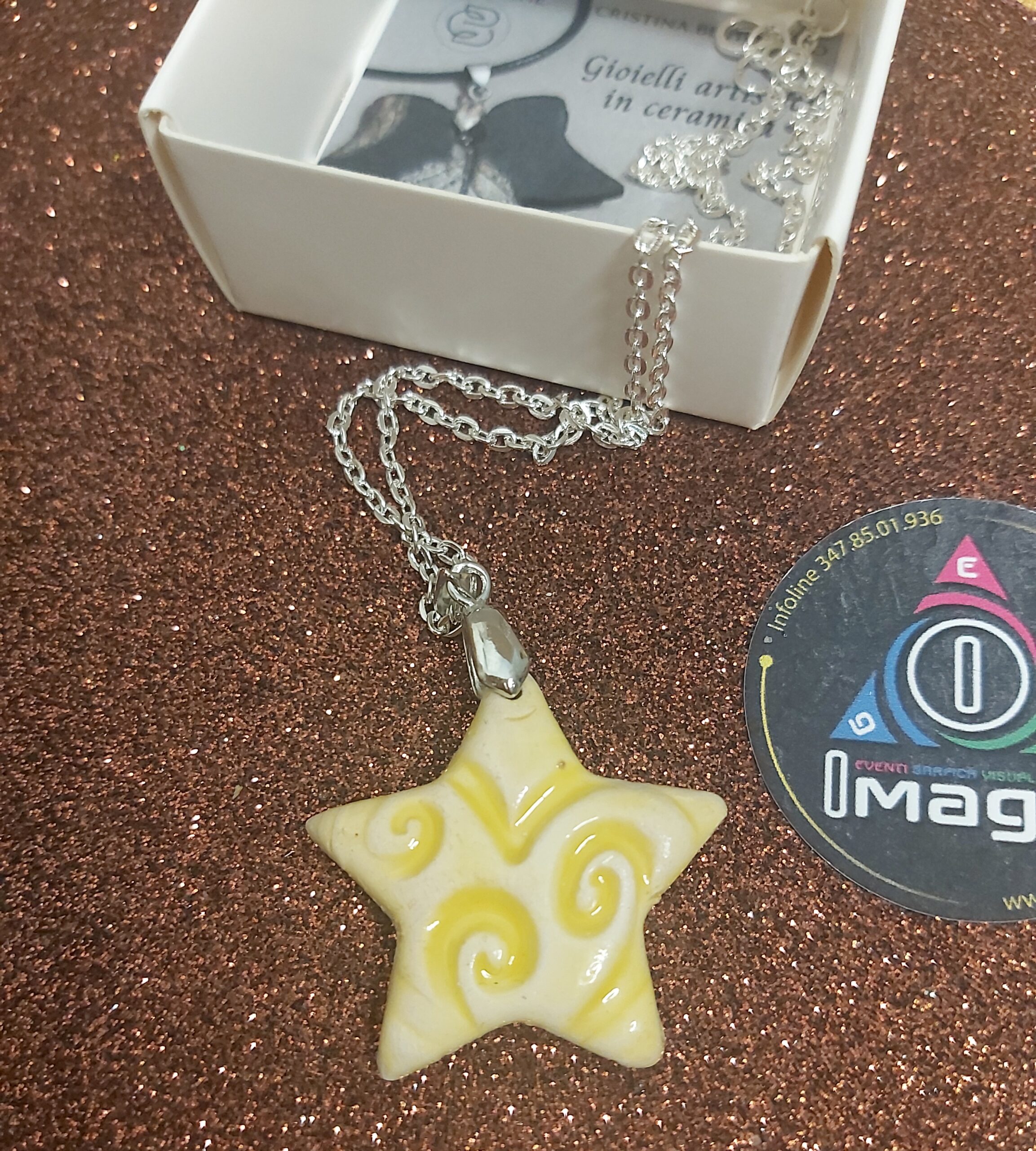 Gioiello artistico in ceramica a forma di Stella con collanina color argento consegnato in deliziosa scatolina e certificato di produzione dell’artista.