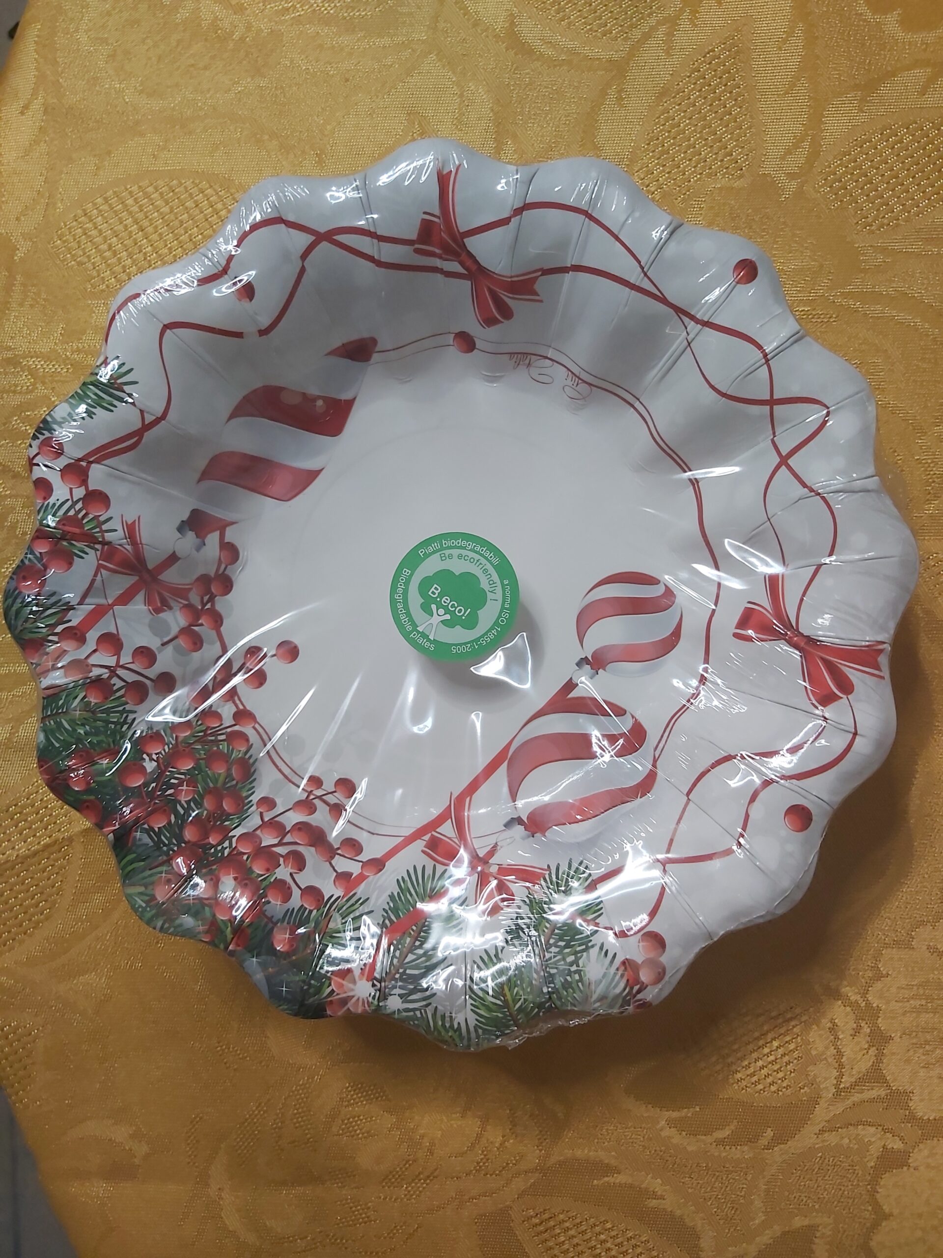 Simpatico piatto fondo in cartoncino stampato con marchio di ecosostenibilitĂ