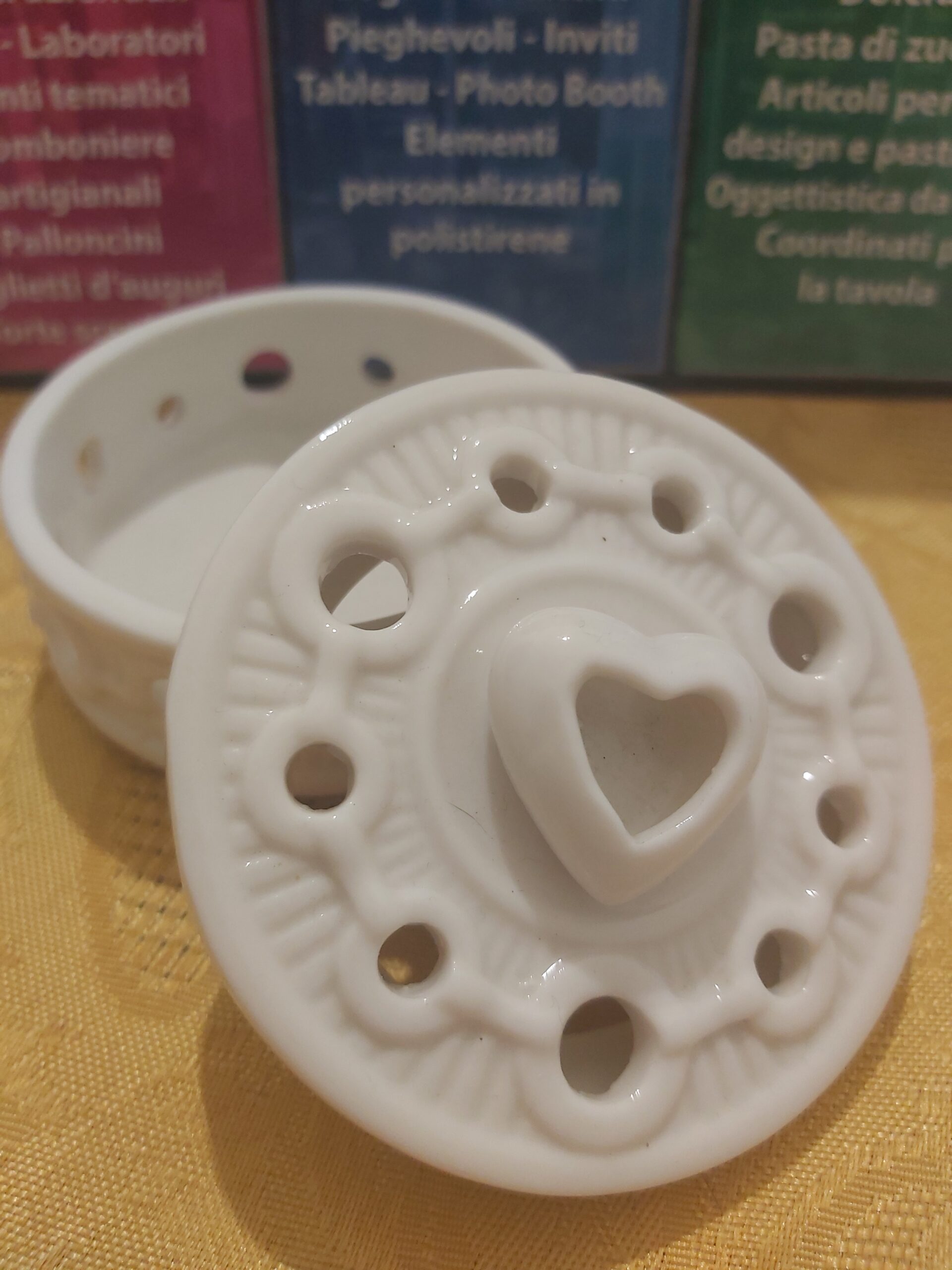 Romantico portagioie o piccolo porta caramelle, sicuramente dolcissimo visto il suo cuoricino posto sulla superficie del coperchio.